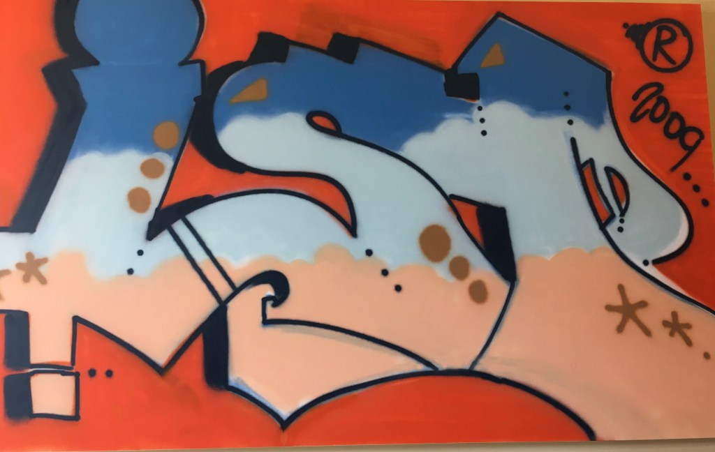 Artwork by Rich Patterson. ISP, 2009, spray paint on canvas. (Commissioned for the Integrated Studies Program, UND.)